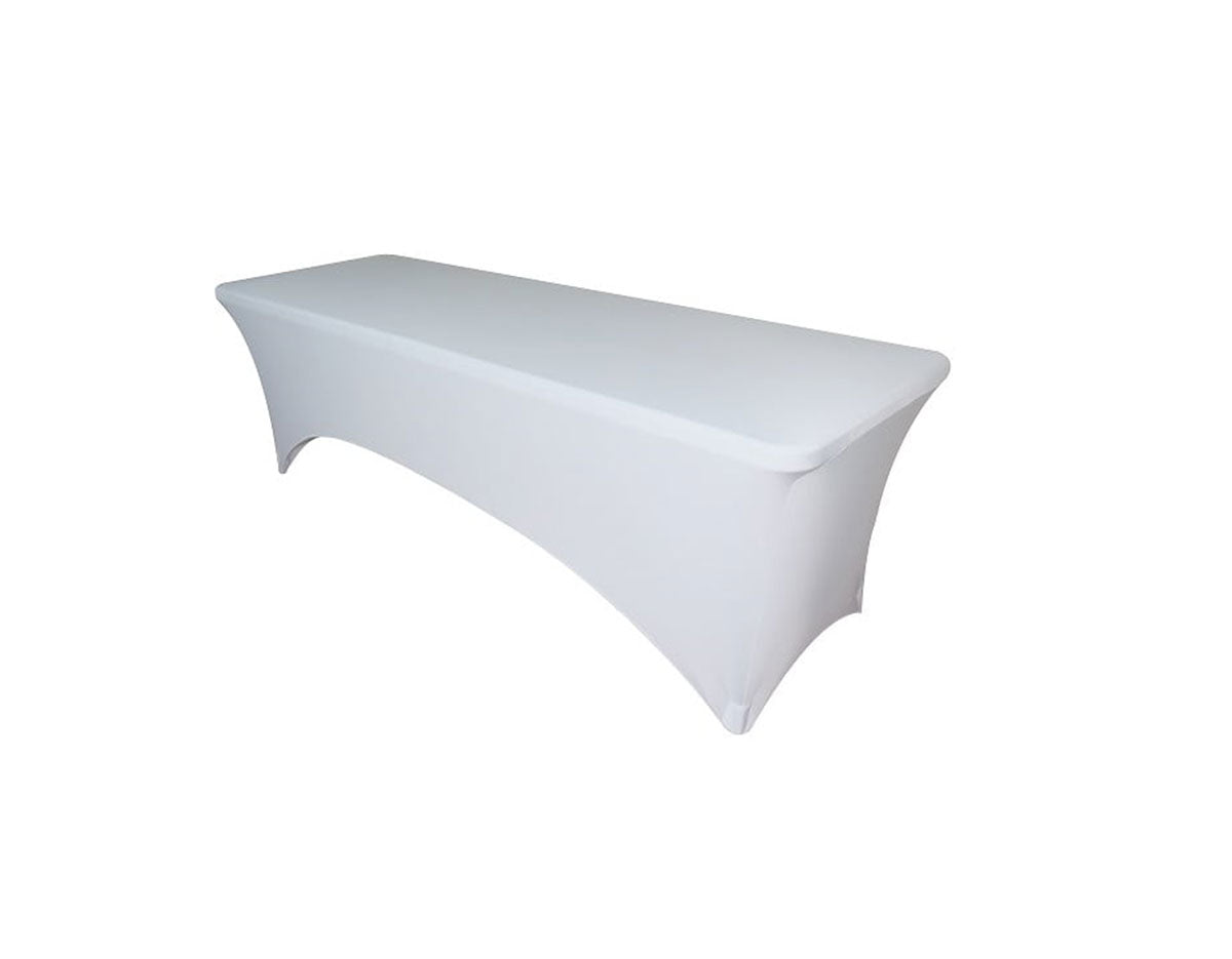 Spandex para Mesa Rectangular de 2.41mt - Blanco / Poliéster y Spandex está agotado y se enviará tan pronto como vuelva a estar disponible.