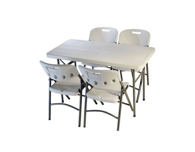 Mesa de 1.23mt y 4 Sillas Robustas - Blanco / Plástico / 4 personas está agotado y se enviará tan pronto como vuelva a estar disponible.