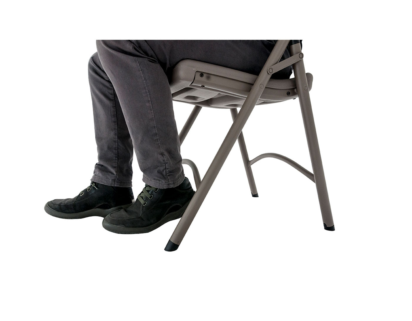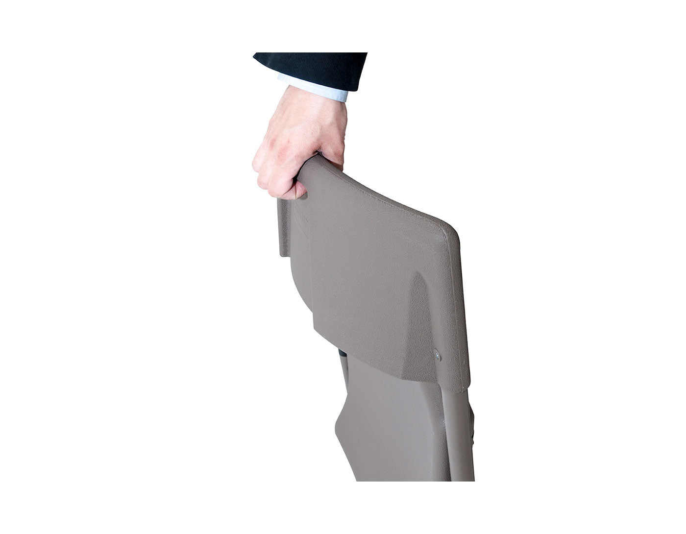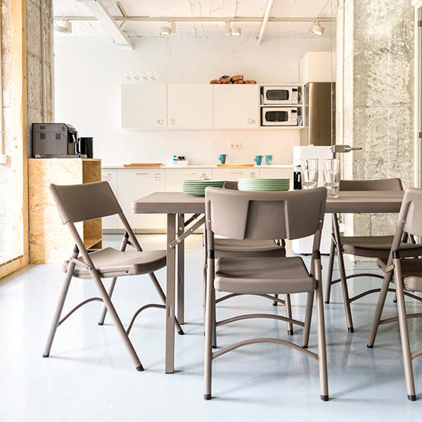 Silla plegable con asiento y respaldo de polietileno, ofreciendo amplitud, solidez y comodidad. Ideal para para terrazas, restaurantes, eventos, conferencias y banquetes. Garantía limitada de 5 años.
