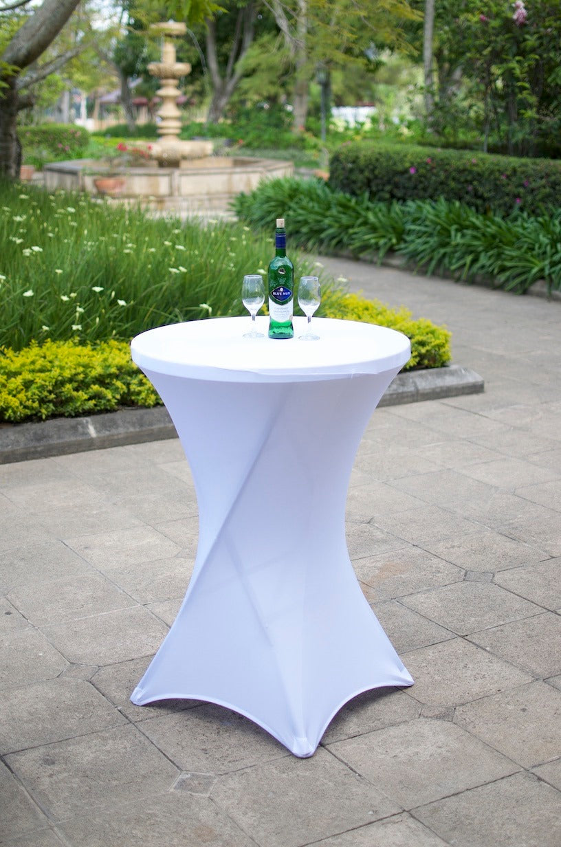 Mesa alta para recepción. Utilizada para que los invitados tomen sus bebidas de pie y puedan socializar al aire libre o interiores.