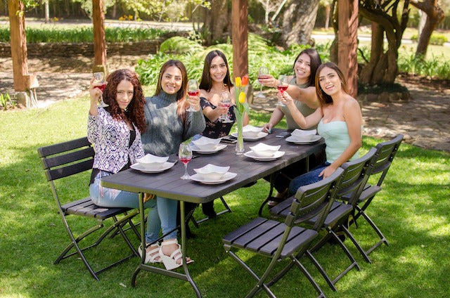 mesa plegable a la mitad y 6 sillas Goodtime Forest